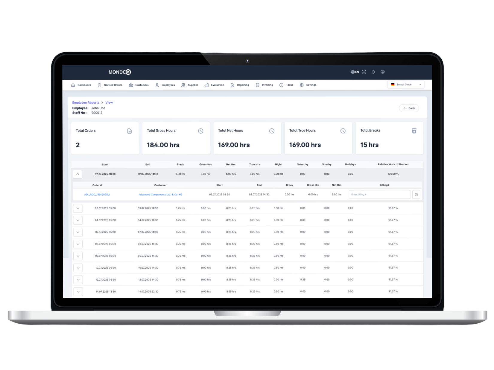 Track and optimize employee work hours, utilization rates, and performance metrics in real-time